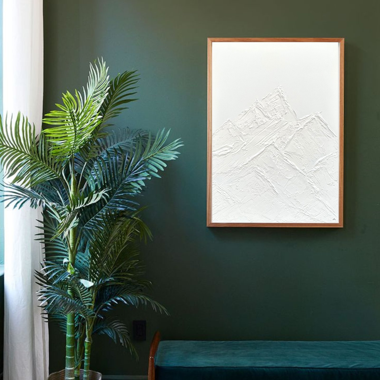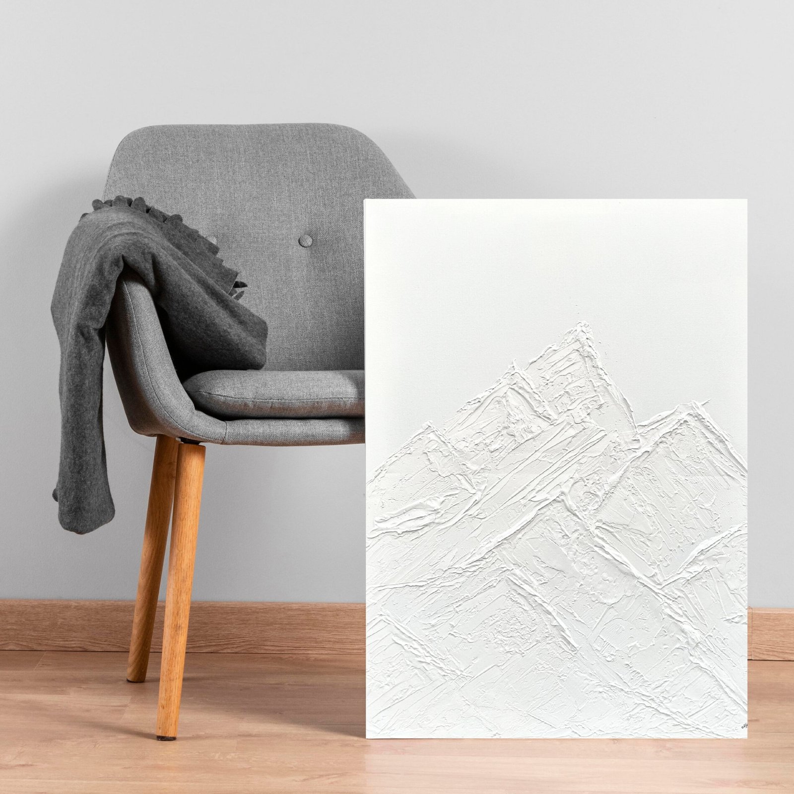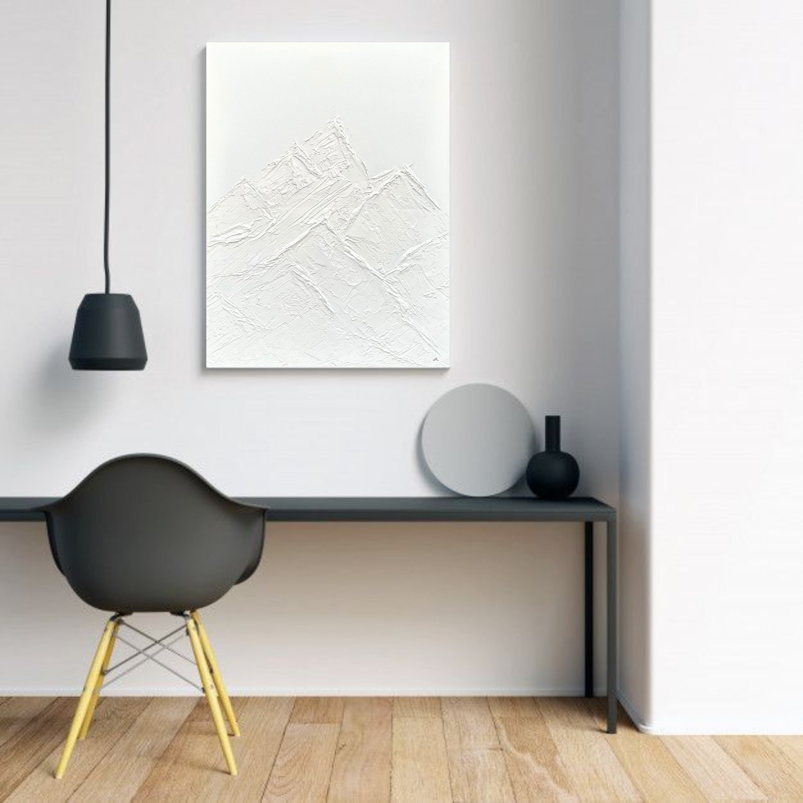 Pintura monocromática de montaña con textura.